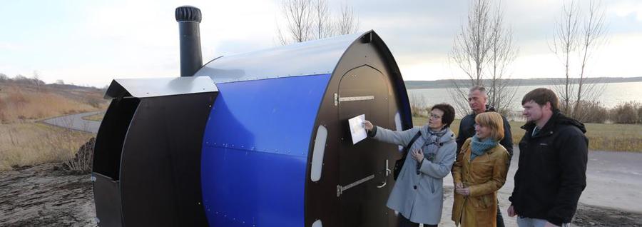 Entfernt erinnert es mit seinem Schlot an ein kleines Kraftwerk – und so ganz falsch ist das nicht: Das erste Trockenklo im Neuseenland ist jetzt am Störmthaler See entstanden. Am Donnerstag berieten die Gemeinde Großpösna und der Tourismusverein Leipziger Neuseenland mit dem Graffiti-Künstler Tino Schneider, wie es noch verschönert werden kann.